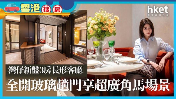 粵港搜房|灣仔新盤3房長形客廳 全開玻璃趟門享超廣角馬場景